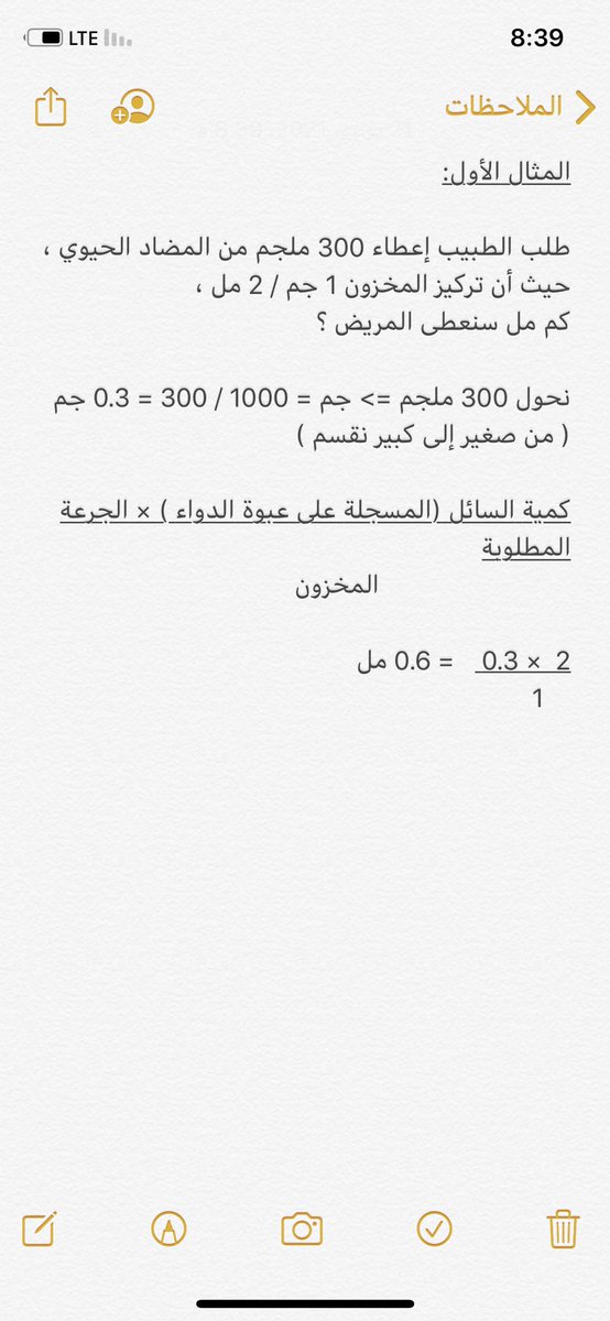 @KSAnurse2 توضيح * كمیة السائل (المسجلة على عبوة الدواء ) × الجرعة المطلوبة مقسوماً على المخزون