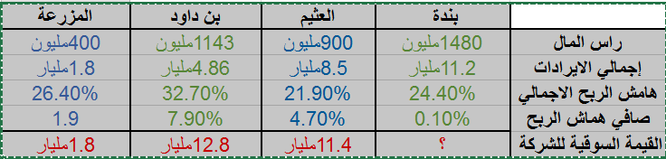 3- سنقيم قطاع التجزئة بمقارنته بشركات التجزئة المدرجة في سوق الاسهم كاسواق العثيم وبن داود والمزرعة.