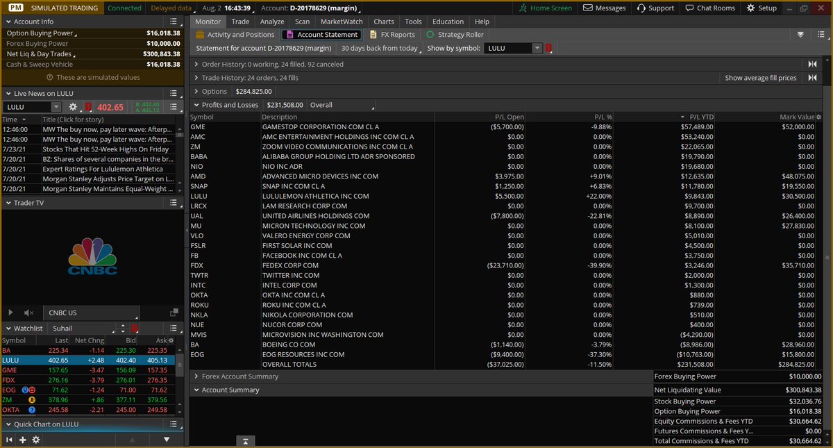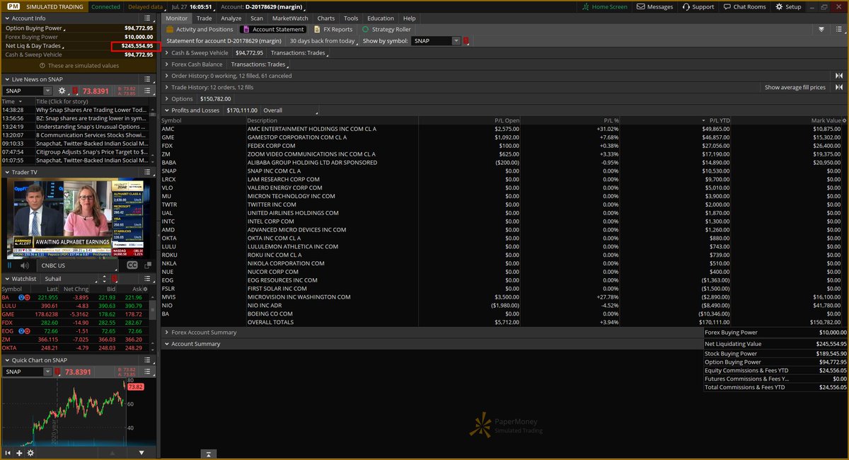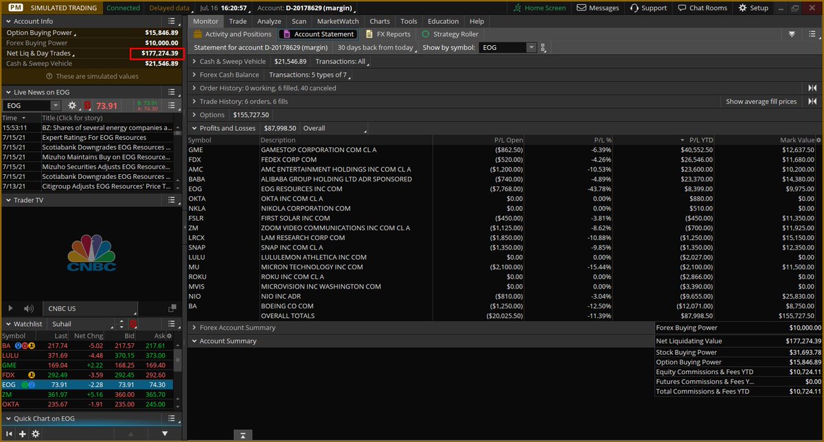 الصورة اعلاه تُظهر ترتيب الشركات من ناحية تراكمية الارباح، إذا قارناها بالاسابيع الماضية سنلاحظ أن $FDX و $GME تراجعت بشكل ملحوظ، في حين أن شركات $NIO و $UAL و $ZM و $SNAP بدأت تتقدم الى الاعلى ، ولم يتبقى سوى شركتين خاسرتين في القائمة هما $EOG $MVIS ، ودخلت شركة جديدة هي: $GM