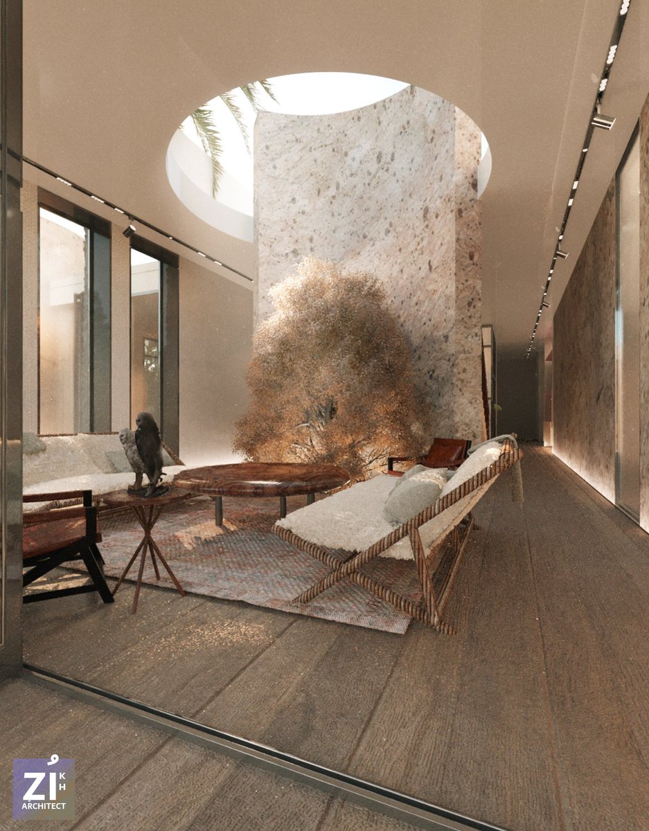 استخدمنا الحدائق الداخلية والاسقف السماوية بالمشروع لتعطي احساس يتناغم من الداخل للخارج