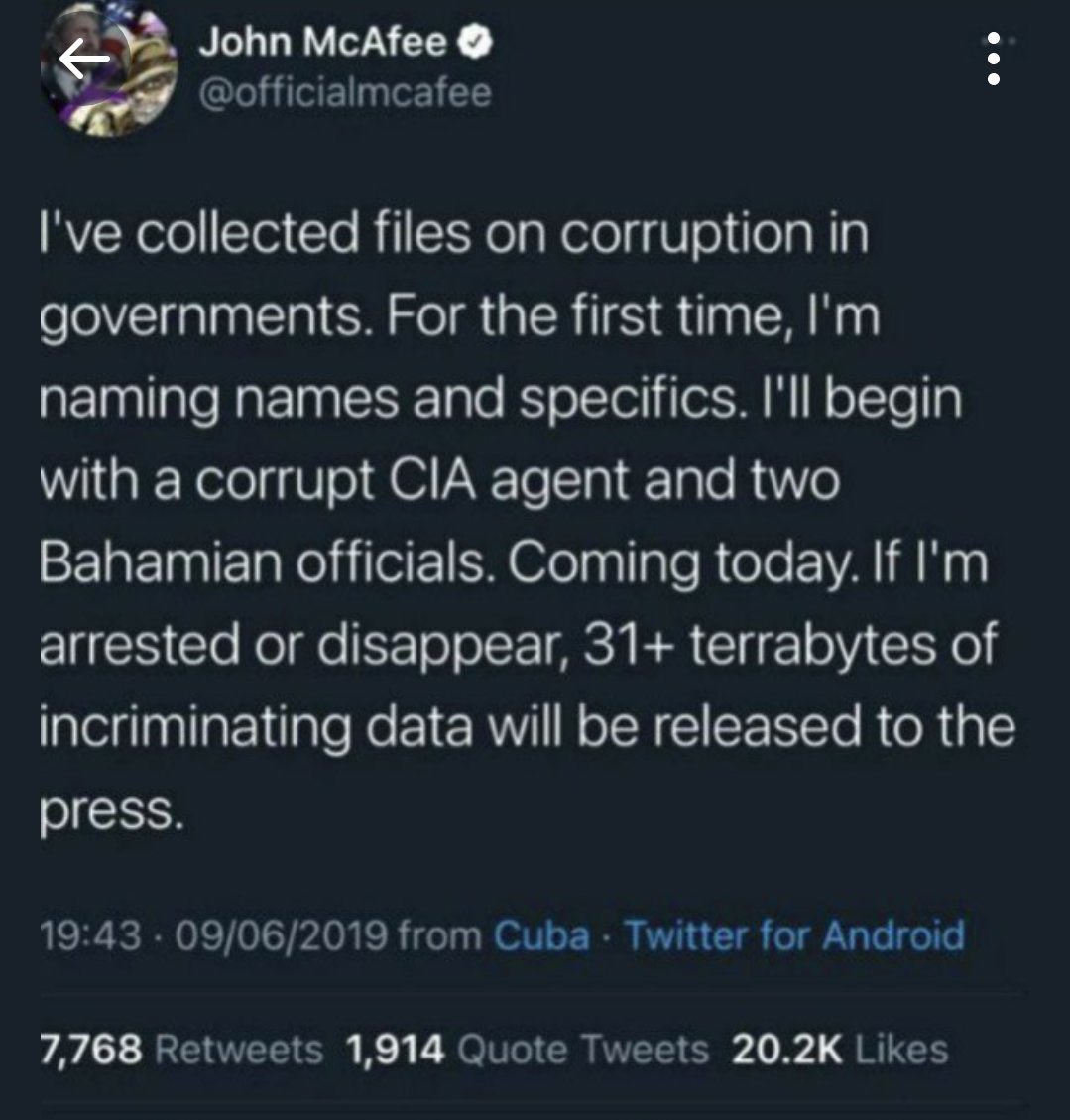 أعتقد أن جون مكافي أعد نفسه للانتحار في هذا اليوم، وكان يعلم أن إسبانيا سوف تسلمه للولايات المتحدة، متمسكاً بأملٍ بسيط في عدم تسليمه. لأنه يعلم أنه سوف يقضي بقية حياته في السجون وتحت رحمة الأمريكيين. لذلك أراد حشد دعم شعبي للتعاطف معه ...
