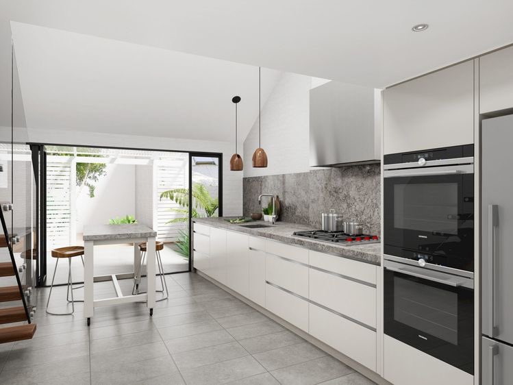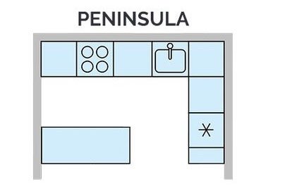- تكون الجزيرة متصلة بالمطبخ من جهه واحده او متصلة بالجدار الفاضي