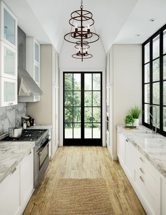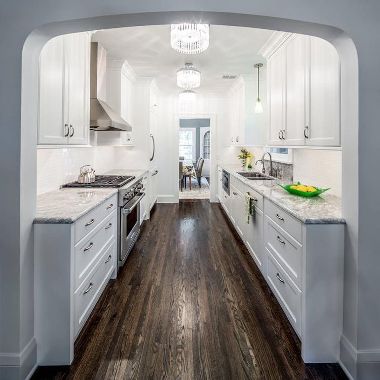- يكون المطبخ على جدارين متقابلين وعرض محور الحركة ١٢٠ الى ١٤٠ سم
