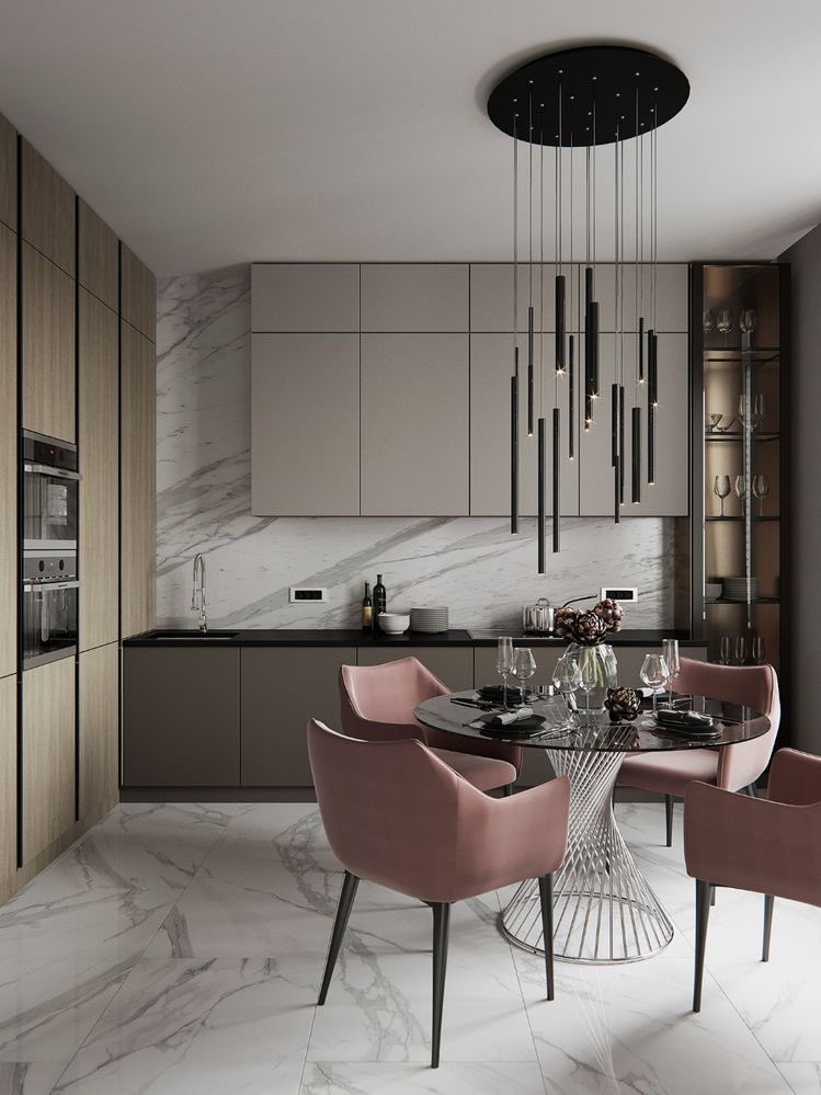 - كذلك مناسبة للمطابخ المفتوحة في الصالات الواسعة وتعطينا منظر جمالي بالاضافة الى دواليب سفلية اضافية وكراسي للوجبات الخفيفة