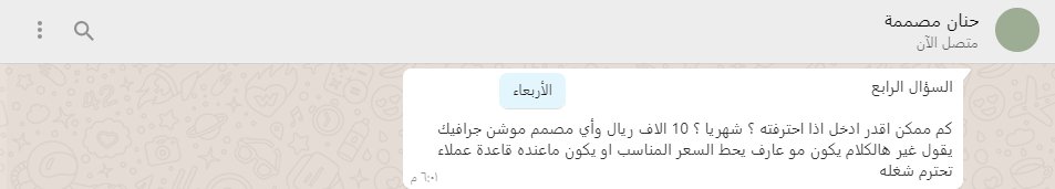 هذي مقابلة بسيطة مع المصممة حنان @desiign_hanan عن طريق الواتساب ، وهي من الاشخاص اللي اعرفهم و محترفين في هذه المهارة