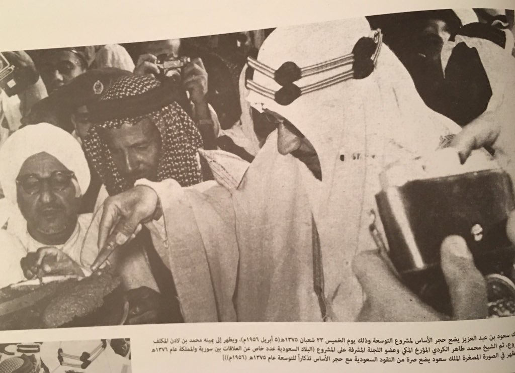 وقد أقيم في شعبان23-8-1375هـ الموافق 1956 احتفال رسمي كبير وضع فيه #حجر_الأساس لتوسعة المسجد الحرام. الذي كانت مساحته 35 الف متر مربع