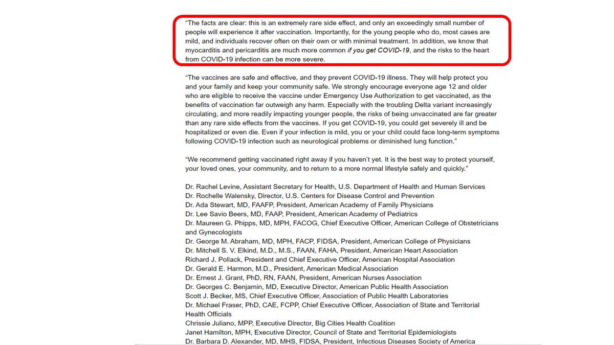 الحالات كانت مرتبطة بلقاح موديرنا وبشكل أقل مع لقاح فايزر وكانت تحدث تقريبًا بعد أسبوع من الجرعة الثانية وغالبًا في المراهقين الذكور من ١٦ سنة فأكبر