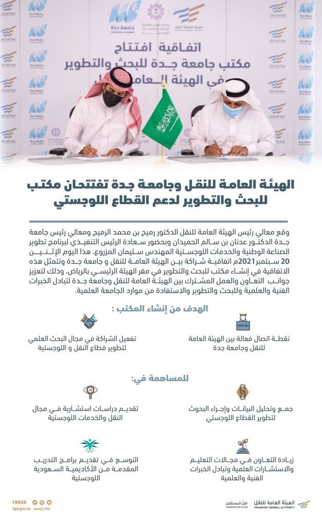 خطوة موفقة من جامعة #جدة بقيادة د. عدنان الحميدان @AdnanAlhomaidan ووزير النقل معالي م. صالح الجاسر @SalehAlJasser بافتتاح مكتب البحث والتطوير للدعم اللوجستي ليساهم في تعزيز المحتوى المحلي لابحاث منظومة النقل احد أهم عناصر اختيار الوجهات/الاستثمار وتعزز الاقتصاد و #تسويق_السعودية