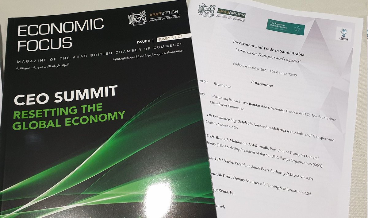استضافت الغرفة التجارية العربية البريطانية @ABCCnews في #لندن 🇬🇧 وفد وزارة النقل والخدمات اللوجتسية #السعودية للحديث عن خطط ومستقبل الاستثمار في قطاع النقل بحضور وزير النقل معالي م. صالح الجاسر @SalehAlJasser ومعالي د. رميح الرميح و د. منصور التركي و أ. عمر حريري ووكلاء الوزارة