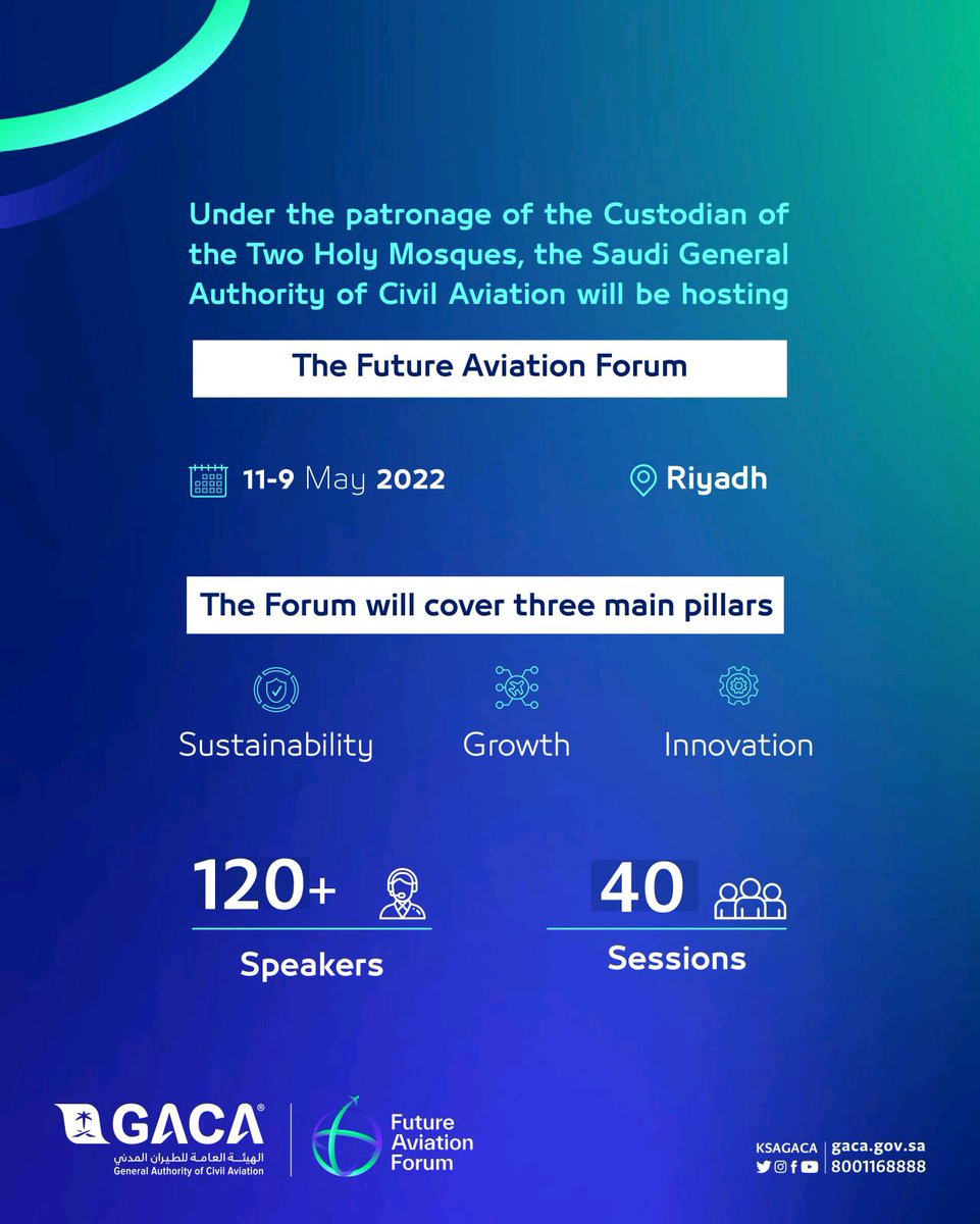 تحت رعاية خادم الحرمين الشريفين.. #السعودية 🇸🇦 تستضيف مؤتمر الطيران ✈ المدني الدولي في شهر مايو 2022 لتكون السعودية محرك لتطوير منظومة الطيران من خلال الإبتكار