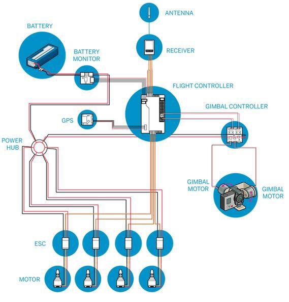 - يمكن لمتحكم الطيران ارسال بيانات حالة الدرون للمستخدم مثل حالة البطارية و الارتفاع و الاتجاه.