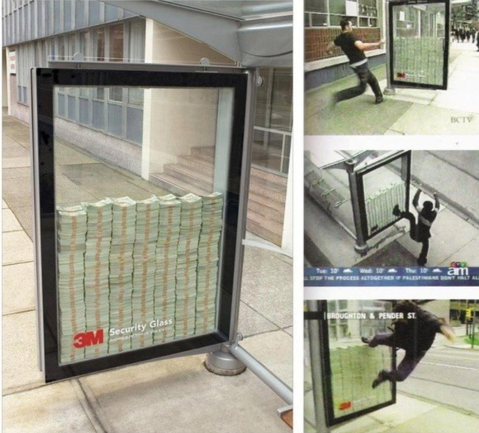 ويعمل لها إعلان بالمجان من دون علمه …….قيمة تلك الإعلانات كلها موضوعة داخل الصندوق الزجاجي فإن نجحت في اختراقه معنى هذا أن إعلانهم لم ينجح وأنهم خسروا كل مادفعوه من اجل الإعلان ومن زواية أخرى قيمة الخسارة من الأفضل أن يحصل عليها مواطن من الشعب على أن تحصل عليه شركة إعلانية ..