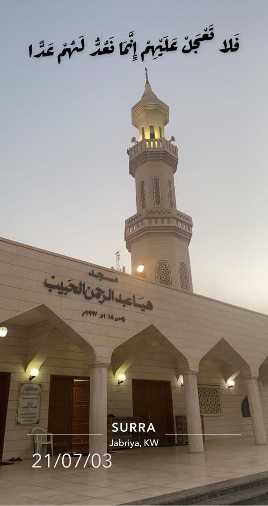 ومشيت مع اخي @naifalrashidi في استطبلات الهجن فتوقف يلتقط صورة لمسجد الشيخين الصغير بحجمه الكببر بمعناه.. اما مسجد ياسين القناعي فيحكي تاريخ الكويت في فعل الخير