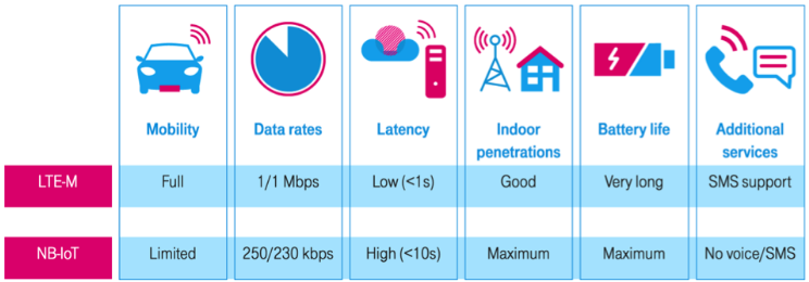 -نظرا لاستهلاكما قدرا قليلاً من الطاقة فكلاهما لا يقدمان سرعة كبيرة في نقل البيانات، وبالعودة إلى النقطة السابقة يسهل القول إن LTE-M اسرع من الاخر.