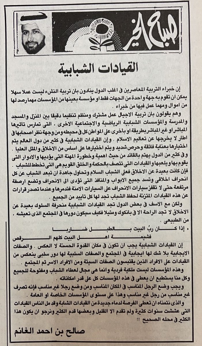 صالح بن أحمد الغانم تحت عنوان القيادات الشبابية.