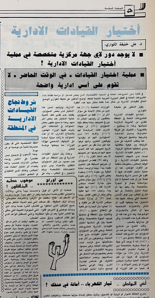 "عملية اختيار القيادات في الوقت الحاضر لا تقوم على أُسس ادارية واضحة"