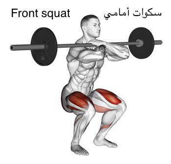 أقوى تمرين للأفخاذ الأمامية والجلوتس وأسفل الظهر هو سكوات الأمامي front squats.