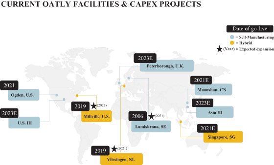 كانت النقلة النوعية للشركة عندما دخلت السوق الأمريكي بعد اطلاق “Oatly Barista Edition" النسخة الخاصة للمقاهي من حليب أوتلي. الذي ميز نسخة الباريستا هو محتوى الدهون الأعلى الذي سهل عملية تبخير الحليب والرسم على القهوة وهي الميزة التي خلقت كوب قهوة متجانس شبيه جدًا للحليب البقري