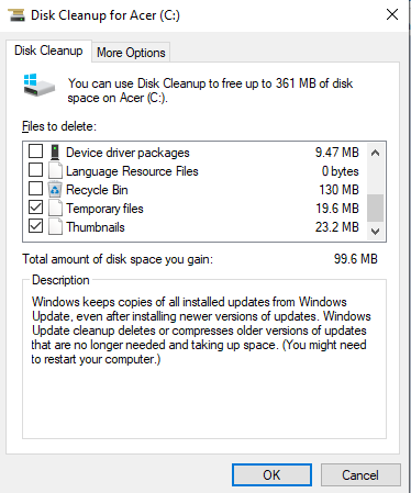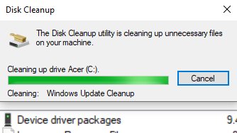 اول ما تظغط Clean up system files بيعطيك تختار القرص وطبعا تختار القرص اللي فيه نظام التشغيل بيسوي عملية بحث وبتتفاجئ من حجم الملفات الكبير اللي @Windows تستهلكه بجهازك