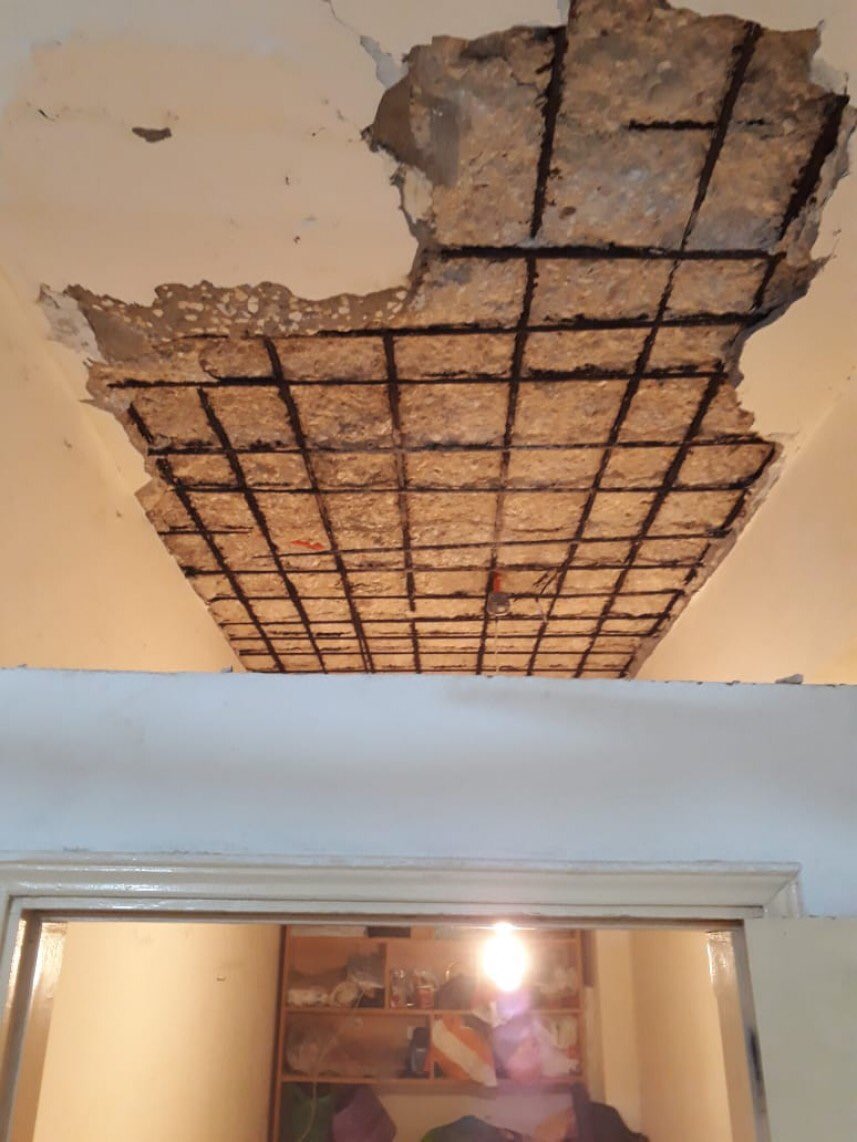 فيتسرب المياه للبلاطه ويسبب مع الزمن صدأ للحديد وقد يسقط الغطاء الخرساني ويسبب اضرار بالممتلكات والارواح ..