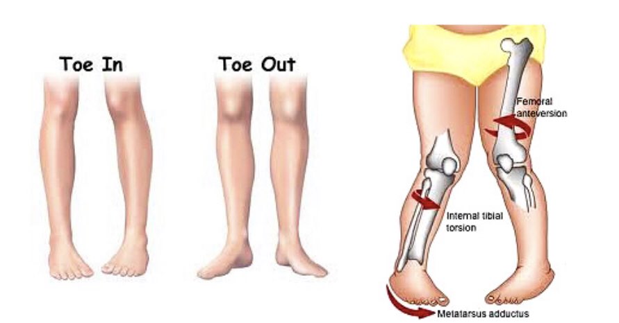 ٥ الأسباب بشكل عام يمكن أن تحدث الحالات التالية - تقارب مشط القدم ، دوران الساق و الفخذ للداخل - من تلقاء نفسها أو بالاقتران مع مشاكل عظام أخرى