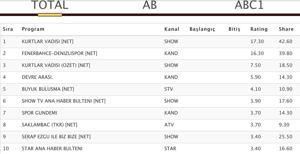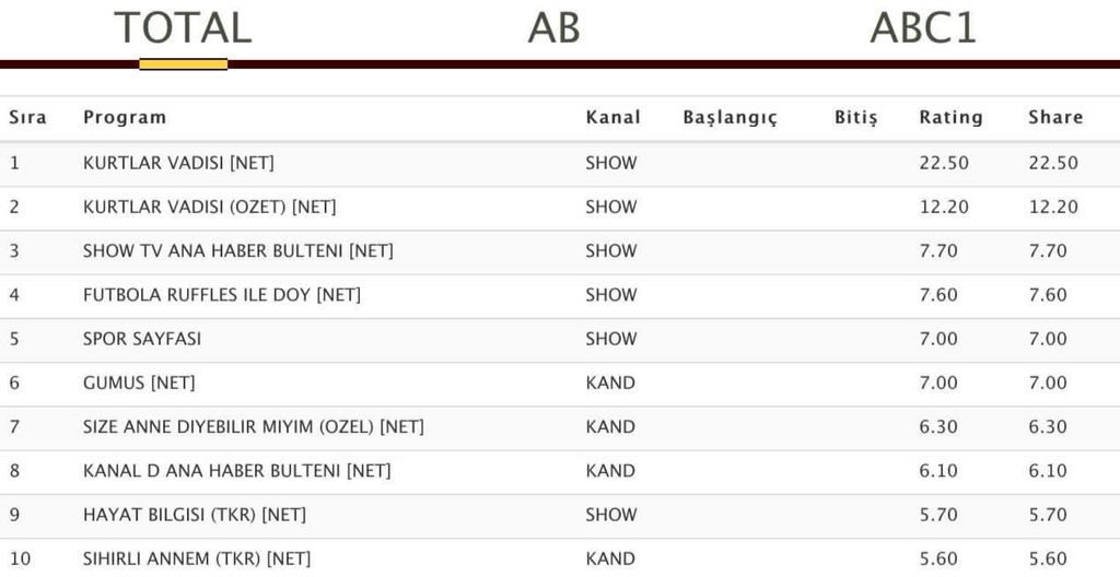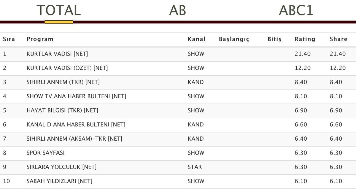 وكان من31 حلقه على نفس القناه وكانت نسبة المشاهدات مايلي