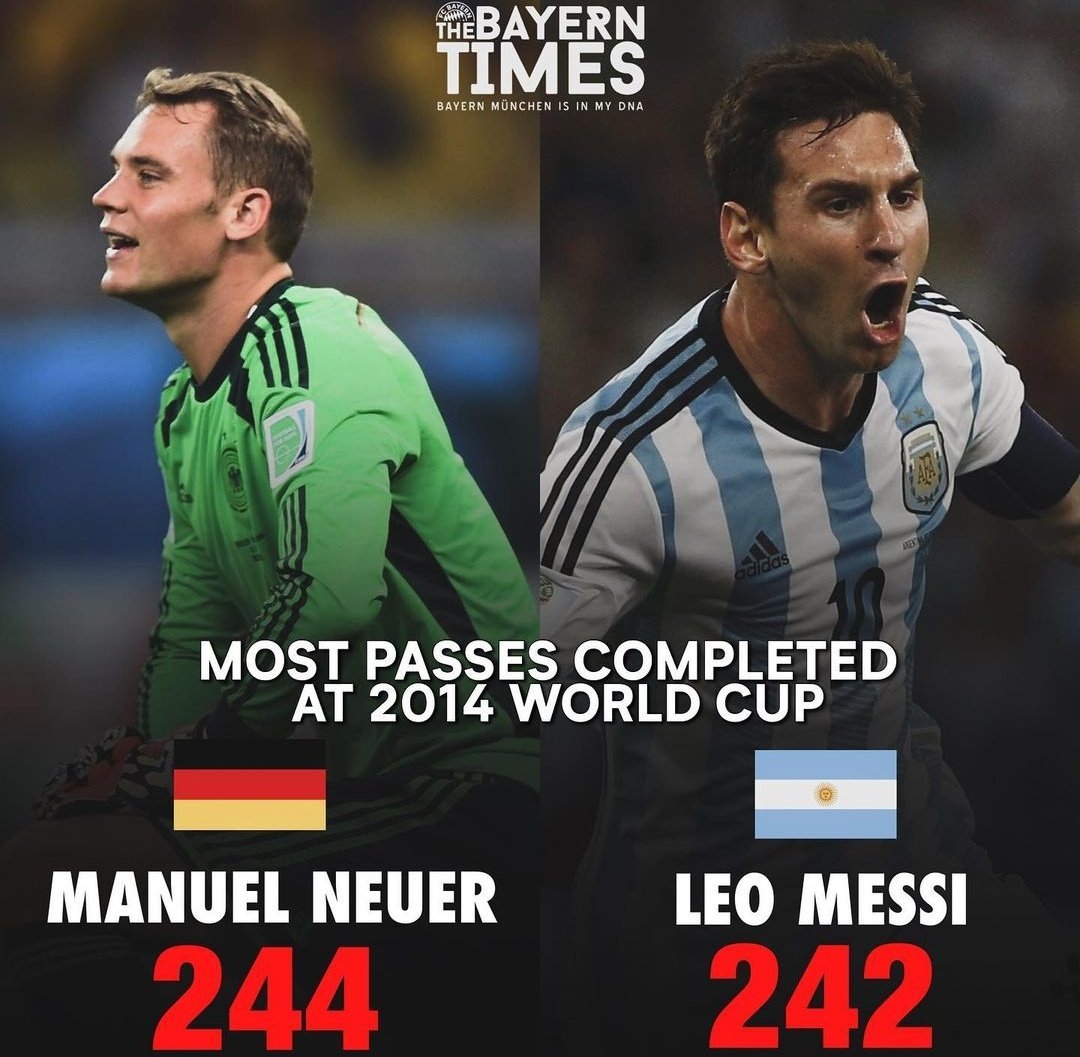 🐐مانويل نوير مرر أكثر من ليو ميسي في كأس العالم 2014 في البرازيل