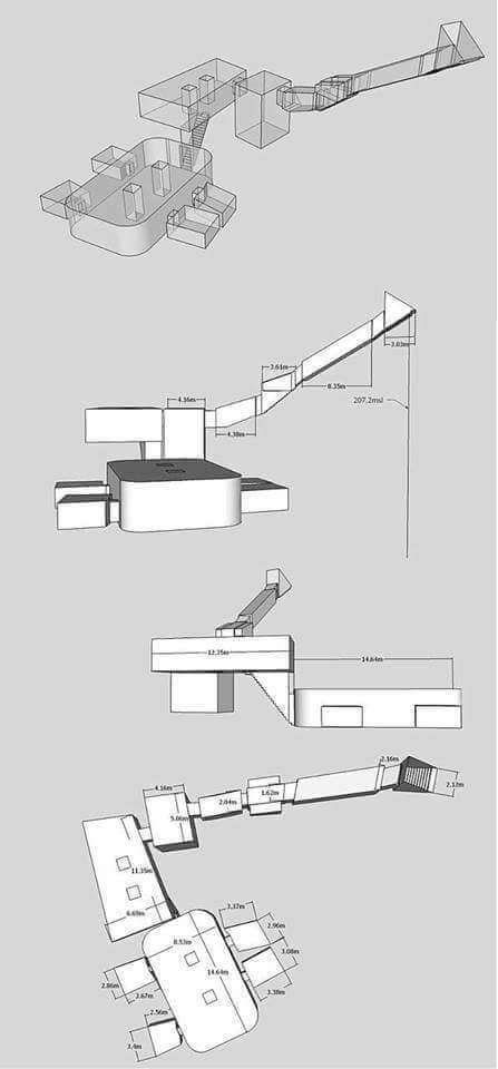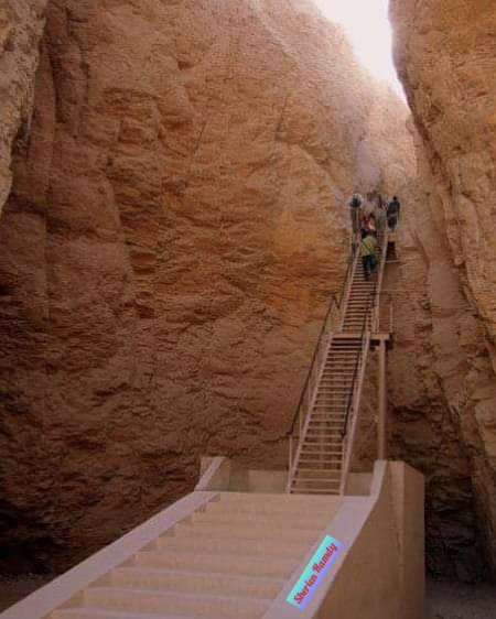 3-مدخل المقبرة فخم يقع في مكان عالي ثم من المدخل إلى دهليز ينحدر انحداراً شديداً إلى أسفل يوصل إلى ممر ينتهي عند حجرة صغيرة يتوسطها سلم هابط ومنها إلى ممر صغير ثم إلى حجرة البئر، وهذه البئر كانت تمنع سيول الصحراء من الوصول إلى غرفة الدفن ومحتوياتها الثمينة👇