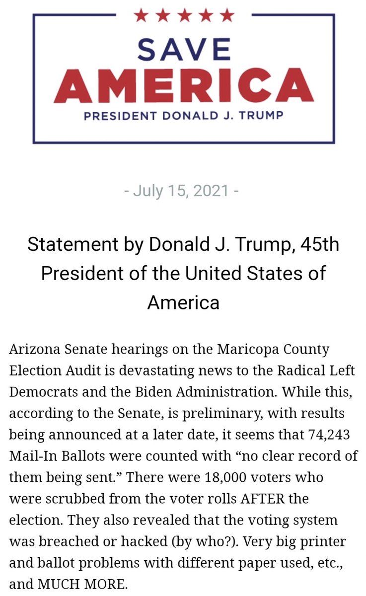 ترامب : كما كشفوا أنه كان هناك مشاكل كبيرة جدًا في الطابعة وبطاقات الاقتراع مع الورق المختلف المستخدم ، وما إلى ذلك ، وأكثر من ذلك بكثير