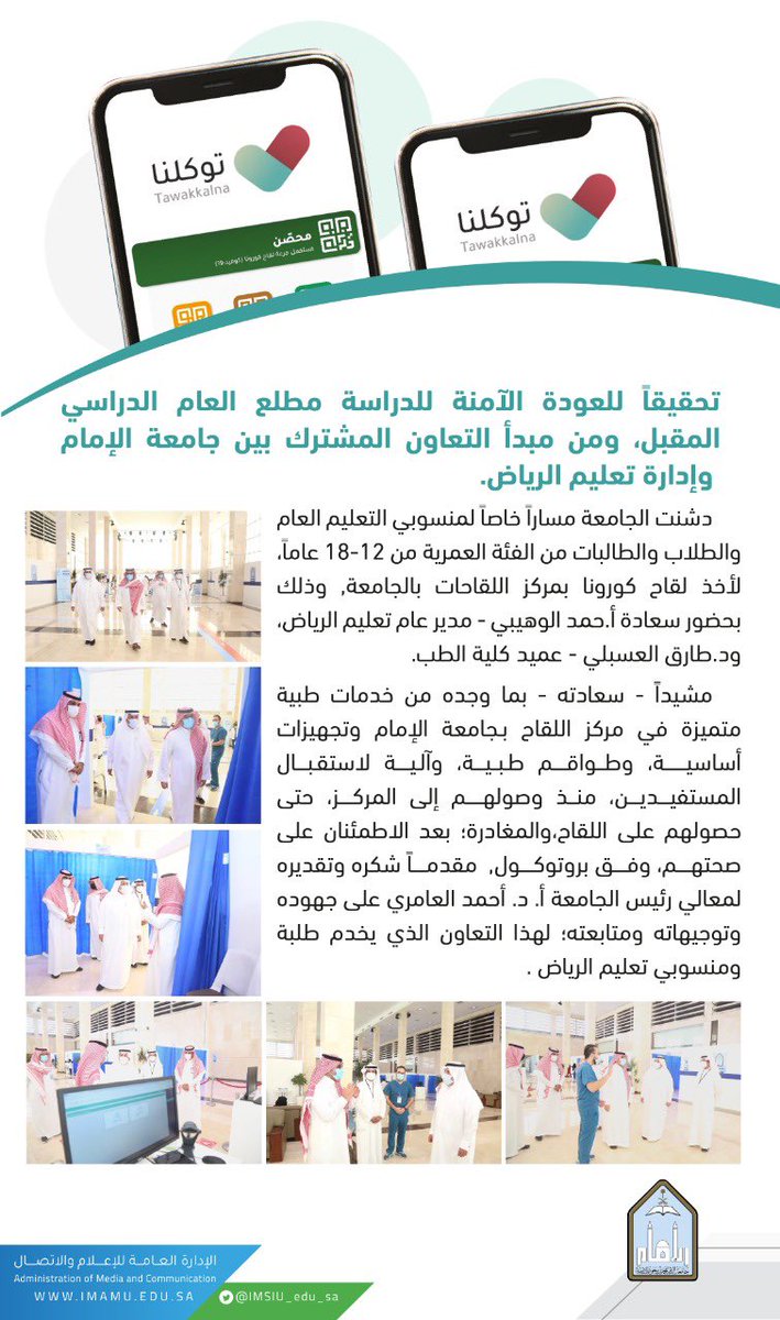 تحقيقاً للعودة الآمنة للدراسة مطلع العام الدراسي المقبل، ومن مبدأ التعاون المشترك بين #جامعة_الإمام وإدارة #تعليم_الرياض .