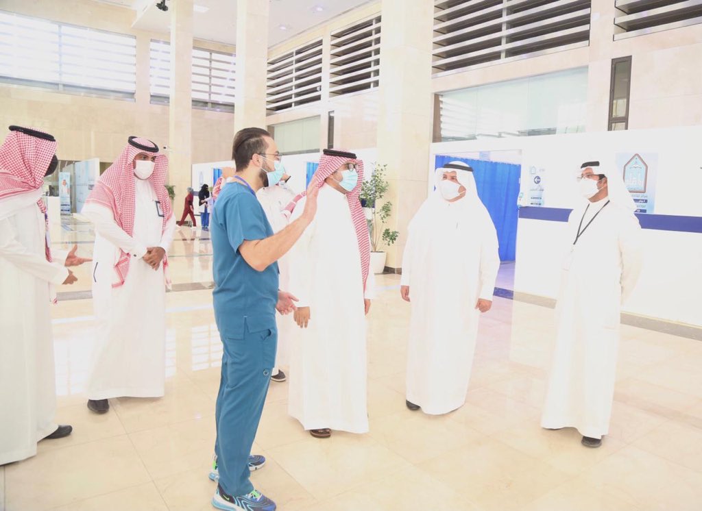 مشيداً -سعادته- بما وجده من خدمات طبية متميزة في مركز اللقاح بـ #جامعة_الإمام وتجهيزات أساسية، وطواقم طبية، وآلية لاستقبال المستفيدين، منذ وصولهم إلى المركز، حتى حصولهم على اللقاح،
