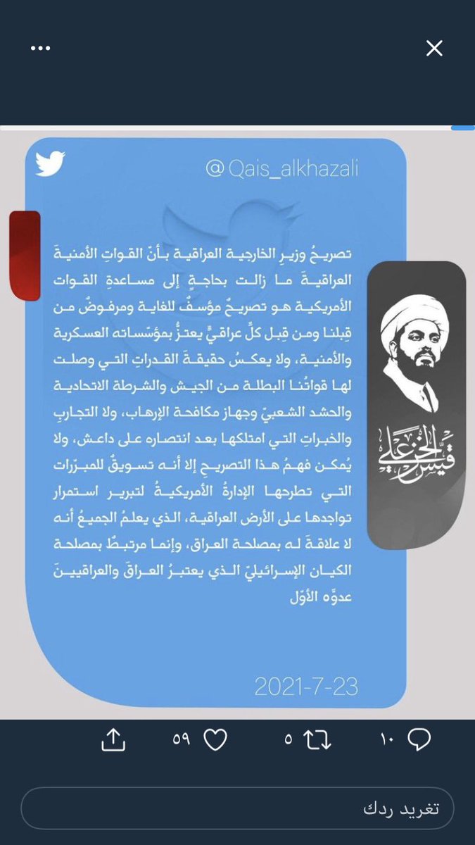 التصدي لأي انقلاب ضد الحكومة الكاظمي وامريكا ودول العالم تدعم الكاظمي .