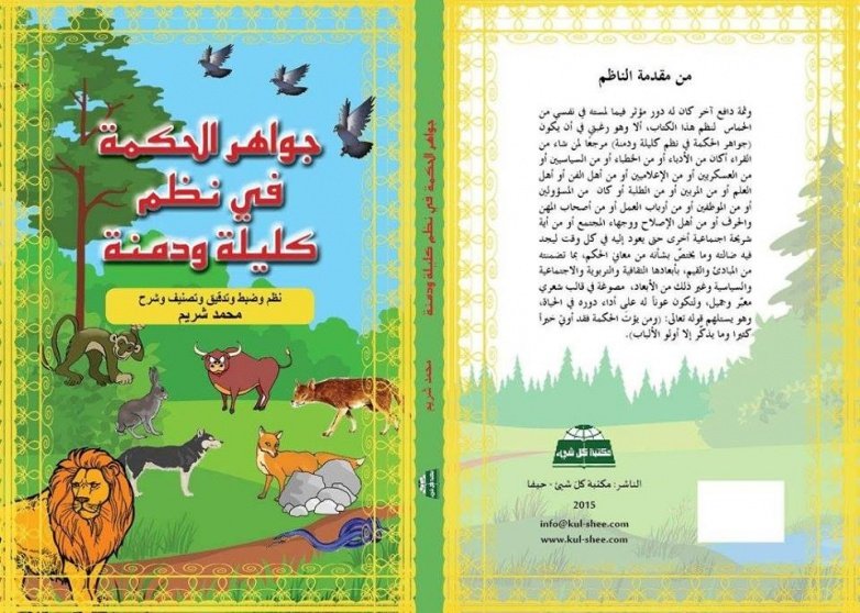 وممن نظم #كليلة_و_دمنة من المتأخيرن الشاعر الفلسطيني شريم الذي نظم كليلة ودمنة في «جواهر الحكمة في نظم كليلة ودمنة»، ويضم 3568 بيتاً في 321 صفحة. ولو أعطي محمد شريم ما أعطي أبان لكان كل بيت بمبلغ 2,602.2 ريال.!!