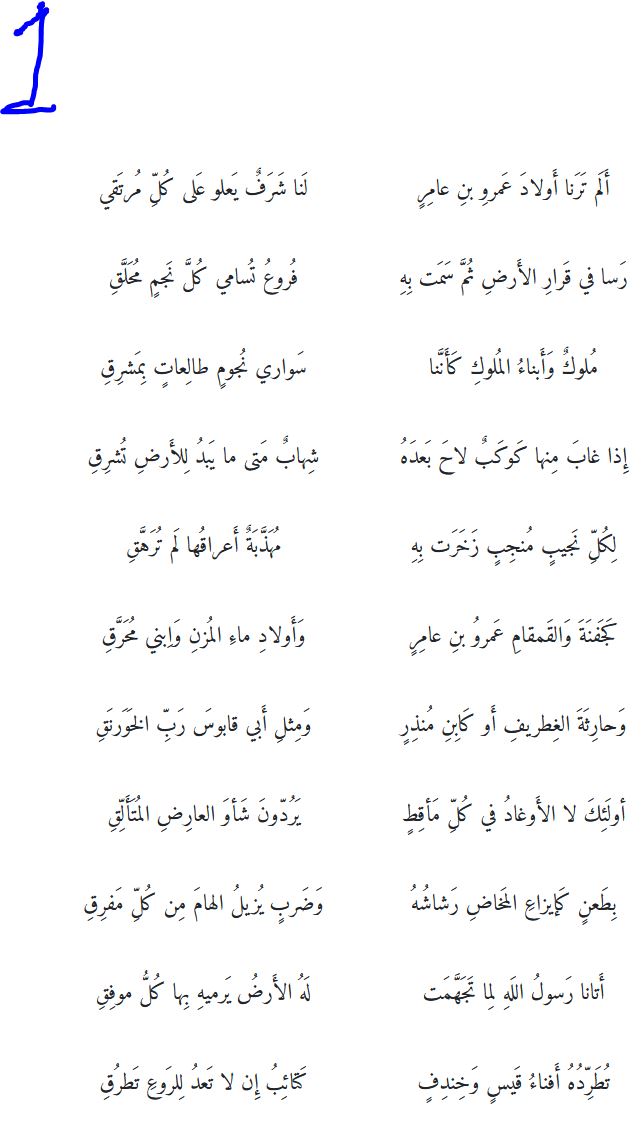 فقال له عدي : بل عرب عاربة وأخرى متعربة فقال لو كنتم كما تقولون لم تحادّونا وتكرهوا أمرنا ؟ فقال له عديّ : ليدلك على ما نقول أنه ليس لنا لسان إلا بالعربية.