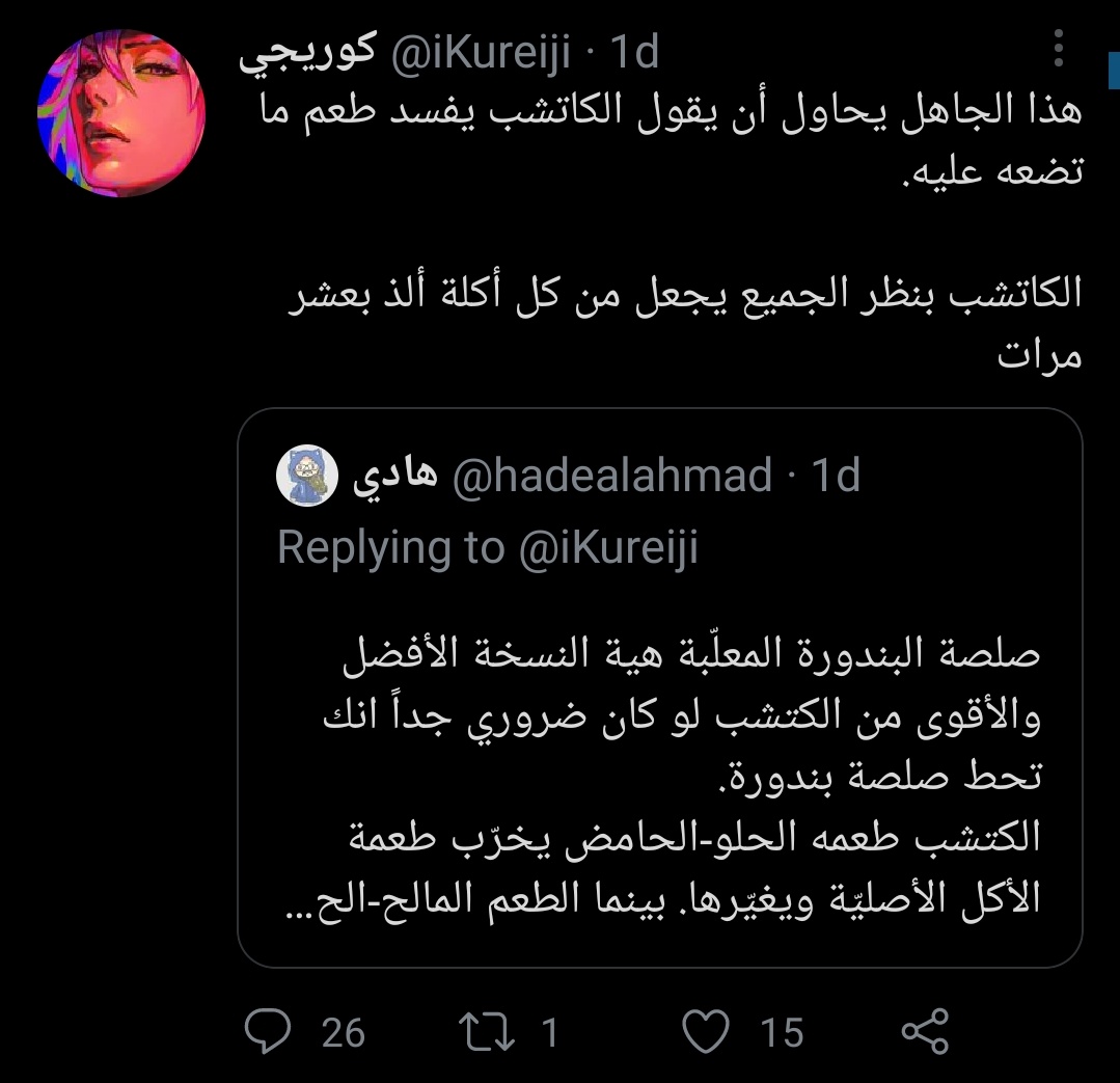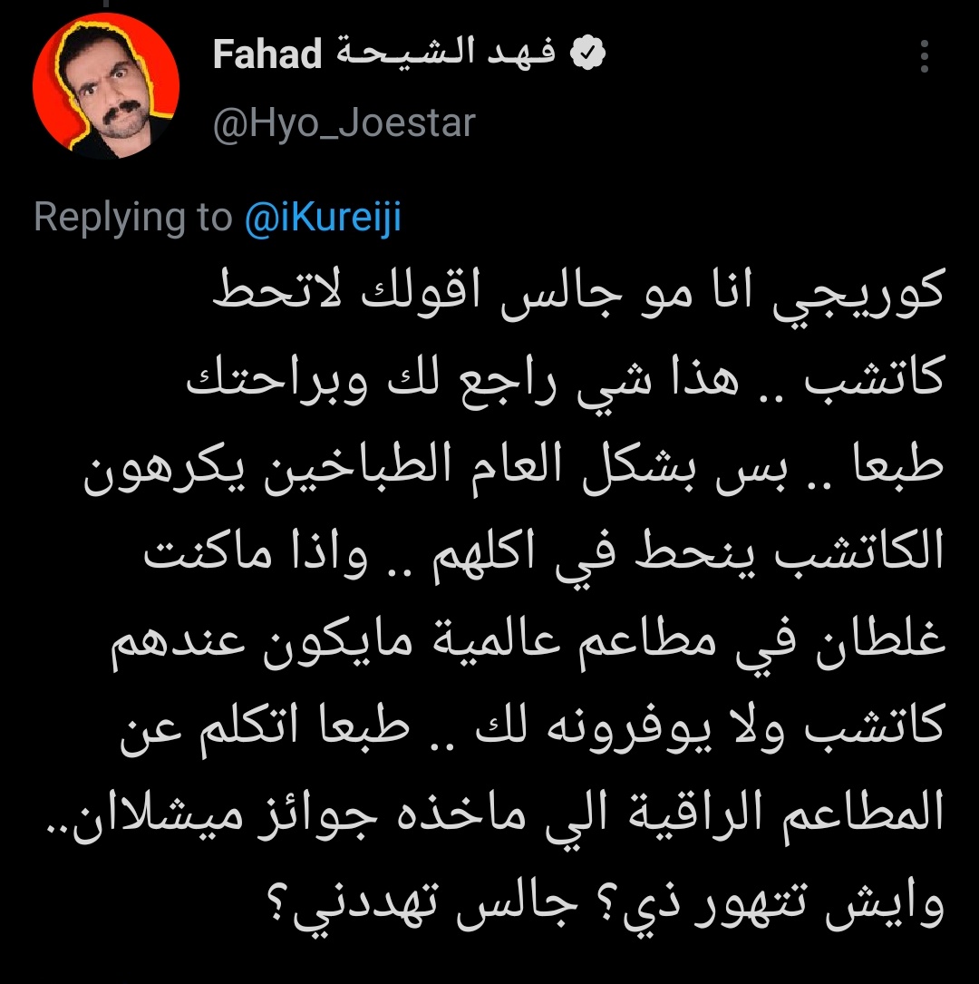 بدأ الموضوع لما شخص سأل هادي @hadealahmad عن صوص الكتشب وهادي انتقد الكاتشب بأنه يخرب طعم الاكل