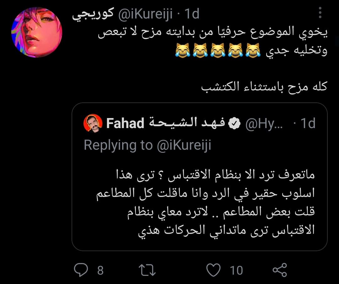 اقدر اقول وهنا انتهت المهاوشة؟ بس يظل في تهمكات من بعض الاطراف على الطرف الثاني والنار ما طفأت تماما ، المهم شكرا لكم