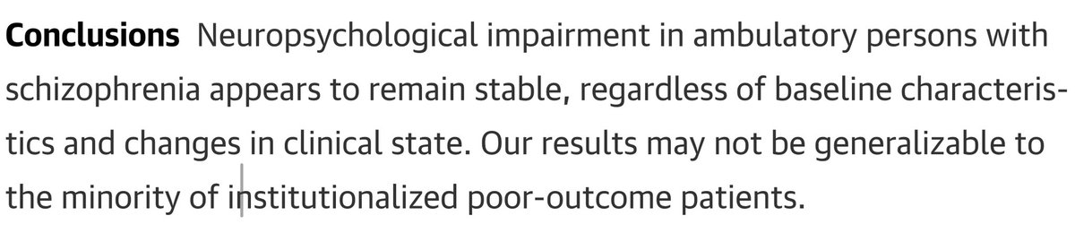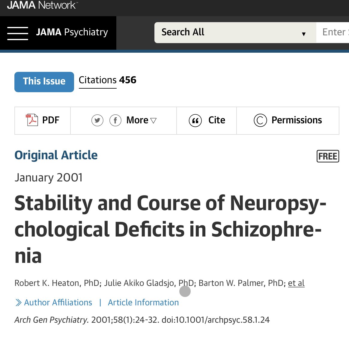 ٥- هنا دراسة لطيفة قامت بأمرين كان وما زال صعب في دراسات الوظائف الذهنية لمرضى الفصام، الأول هو طول مدة الدراسة (هنا ٣ سنوات) والثانية المقارنة مع غير المصابين