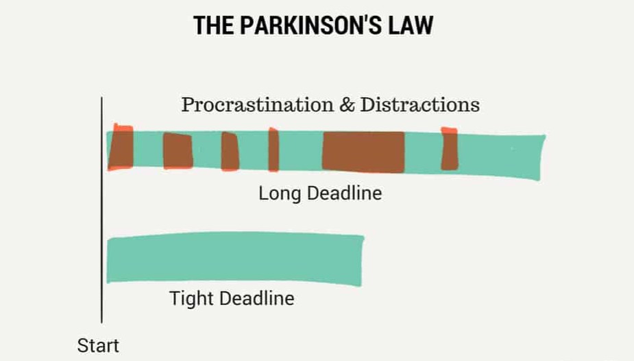 ولو اعطيت نفسك أسبوع عشان تنجز حاجة بتخلص في 3 ساعات...(نفسيا وفي مخك) الحاجة دي حتزداد صعوبة وتعقيد وفعلا حتاخد منك الاسبوع كله.
