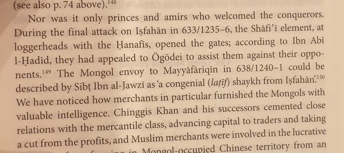 بشهادة ابن ابي حديد، ١٢٣٥ قام الشوافع بفتح بوابات اصفهان للمغول نكاية بالاحناف.