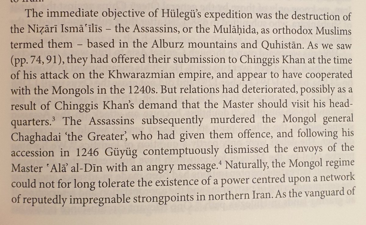 الشيعة الاسماعيلية فتحوا خط علاقات مع المغول خصوصا جنكيزخان.