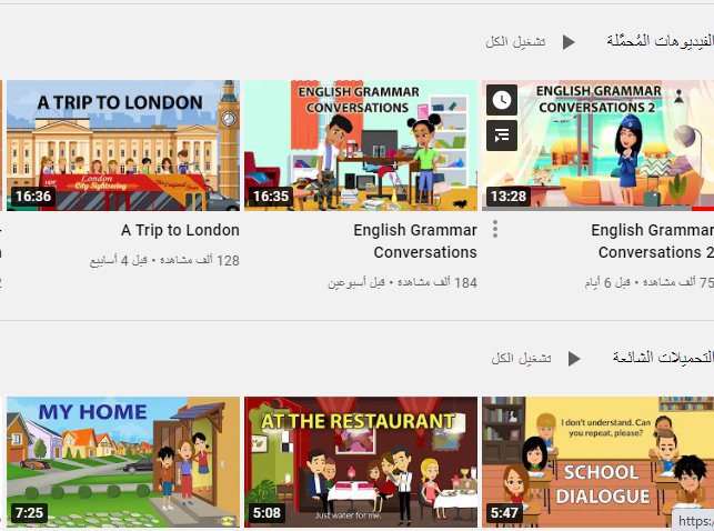 قناة تقدم لك مقاطع فيديو من الحياة اليومية لمحادثات بين أشخاص برسم كارتوني ، بلغة مبسطة و رسم يشرح لك الكلمات و الجمل ، مفيدة جدا للمبتدئين