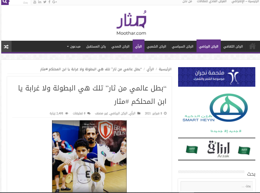 أثناء علاج ابنه في أمريكا وعلى مدار سنوات ولأجل أن يتعلم شيء ويخرج من دوامة الهم والشعور بالمآسي على الذات تعلم رياضة الجوجيتسو، رياضة المحاربين اليابانيين