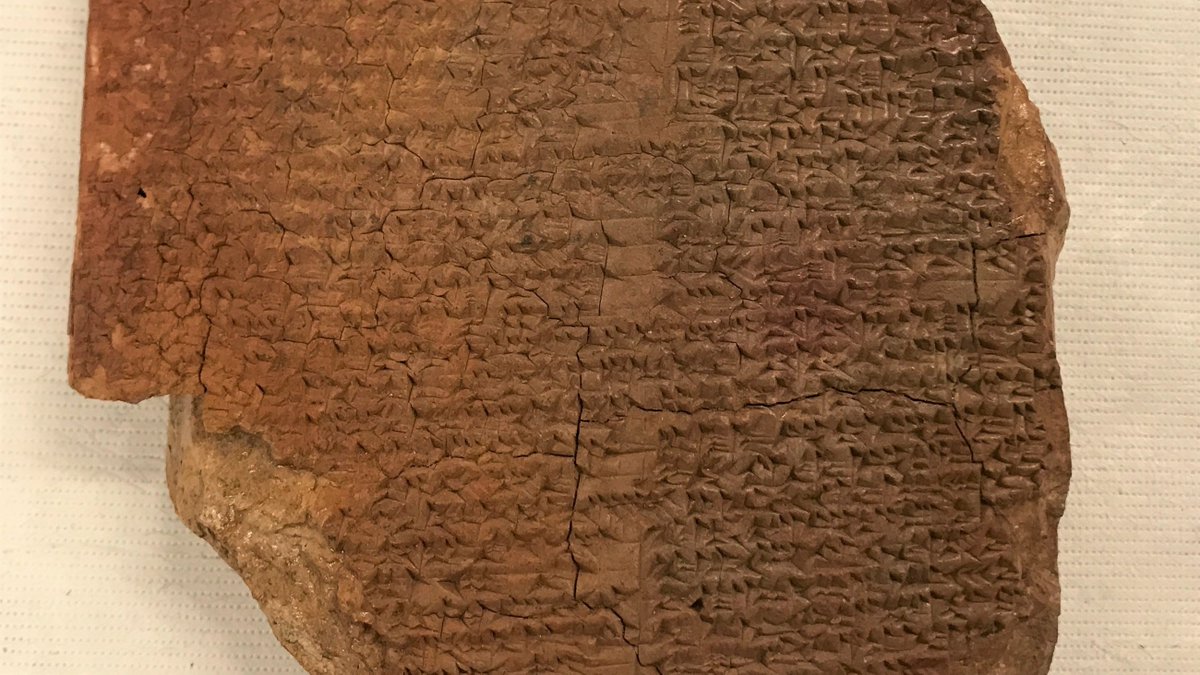 واللوح الأثري مصنوع من الطين ومكتوب عليه بالمسمارية جزء من ”#ملحمة_غلغامش“ التي تُعتبر أحد أقدم الأعمال الأدبية للبشرية وتروي مغامرات أحد الملوك الأقوياء لبلاد ما بين النهرين في سعيه إلى الخلود.