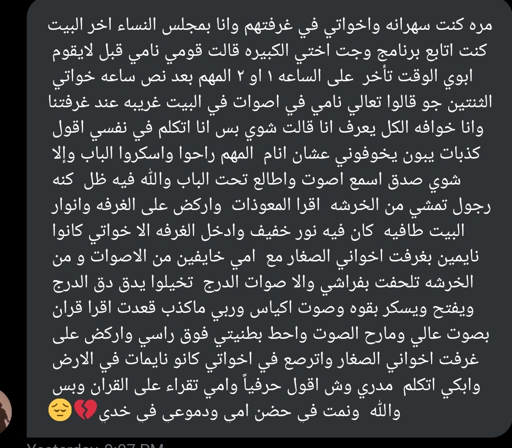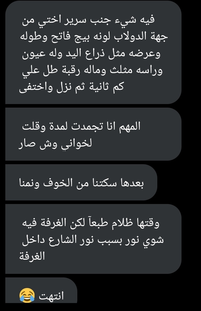 - القصص انا بنقلها فقط والاشخاص الي يحلفون انها حصلت معهم