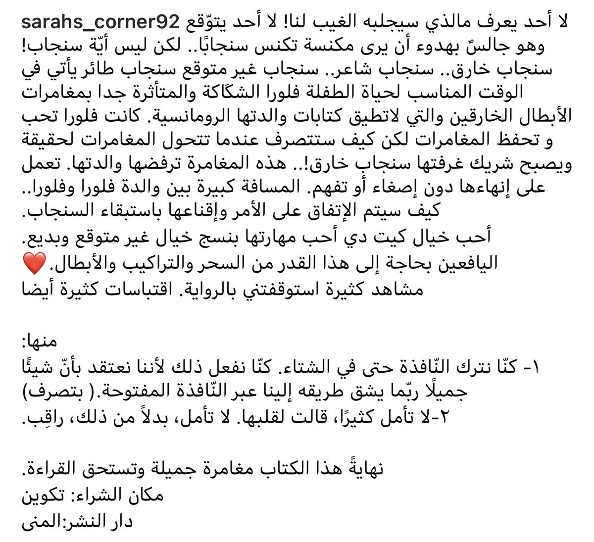 يمكن أن تضعنا الحياة في رحلة طويلة وشروط كثيرة فقط لتقول لنا في النهاية أن مانبحث عنه بشدّة هو لصيقٌ بنا ويسكننا، لكن فقط لو عرفنا ذواتنا وأدركنا إمكانيّاتنا. الأمور لاتحتاج لسحر بقدر ماتحتاج أن نؤمن بدواخلنا. من رواياتي المفضّلة.🤍