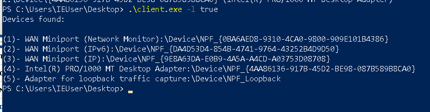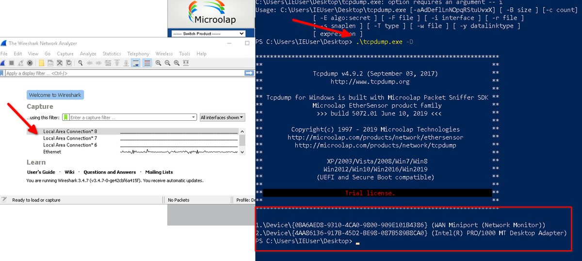 من الواضح ان tcpdump يعاني من نفس المشكله لذلك في خيار -D ومن خلال النتيجه تختار رقم الinterface لان مافي امر في وندوز يطلعها (على الاقل من خلال بحثي)