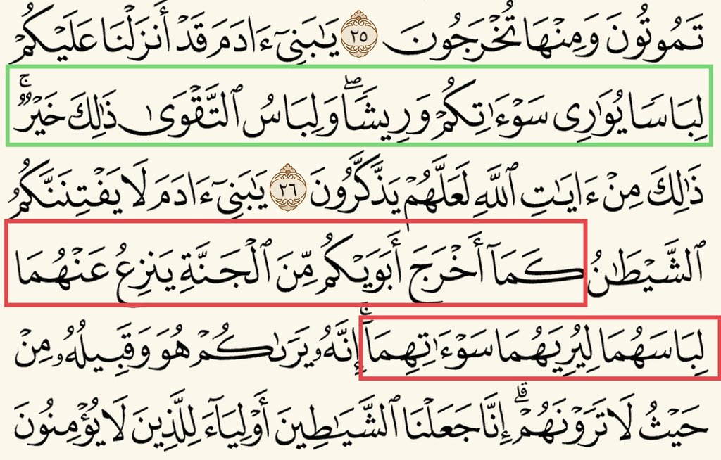 تذكرت حينها أول مكيدة من إبليس عدو الإنسان حكاها القرآن وغايته الأسمى (ليبدي لهما ما ووري عنهما من سوءاتهما) ثم تذكرت نعمة الستر من الخالق على الإنسان في زيه وهندامه وأعظم الستر التقوي والنبل (يا بني آدم قد أنزلنا عليكم لباسا يواري سوءاتكم وريشا ولباس التقوى ذلك خير)