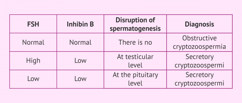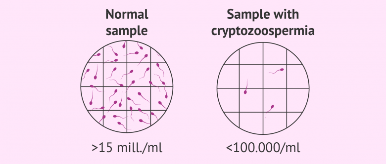 Azoospermai, oligozoospermia, cryptozoospermia.