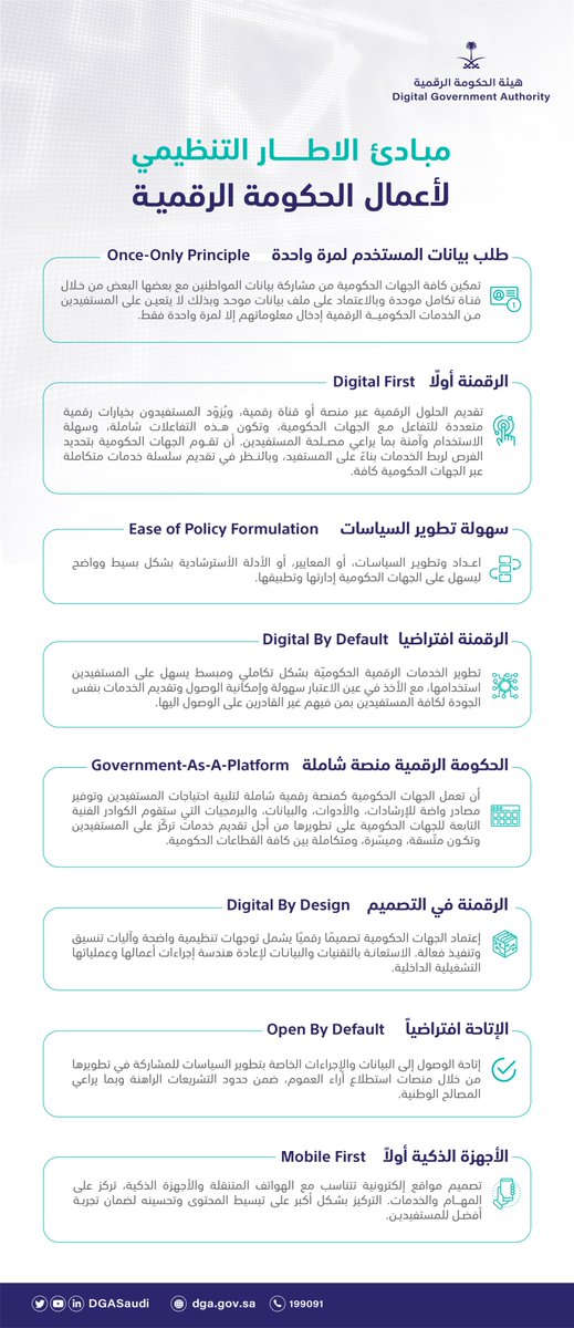 وتعمل #هيئة_الحكومة_الرقمية على إعداد الوثائق التنظيمية للسياسات الخمس المستمدة من سياسة الحكومة الرقمية وتتمحور حول