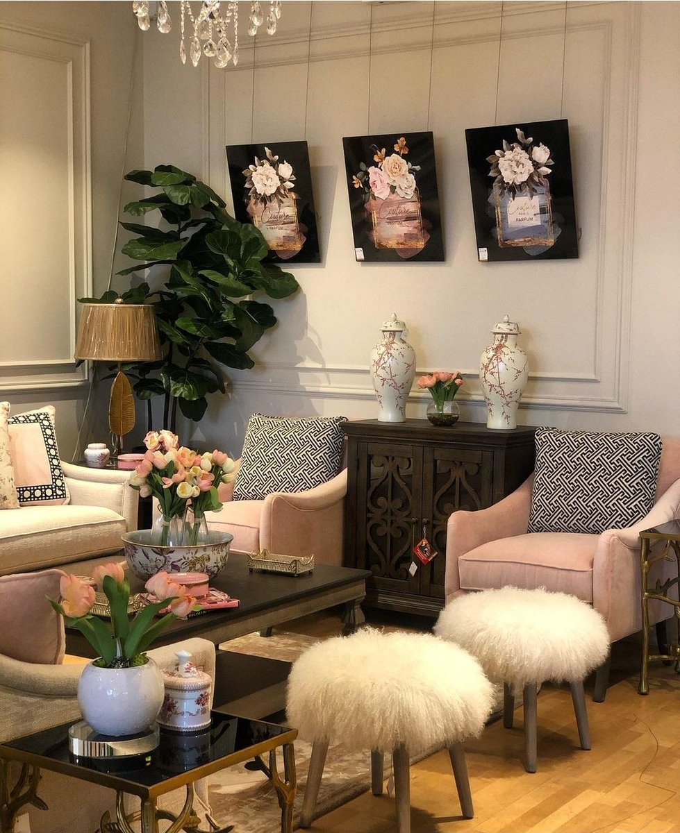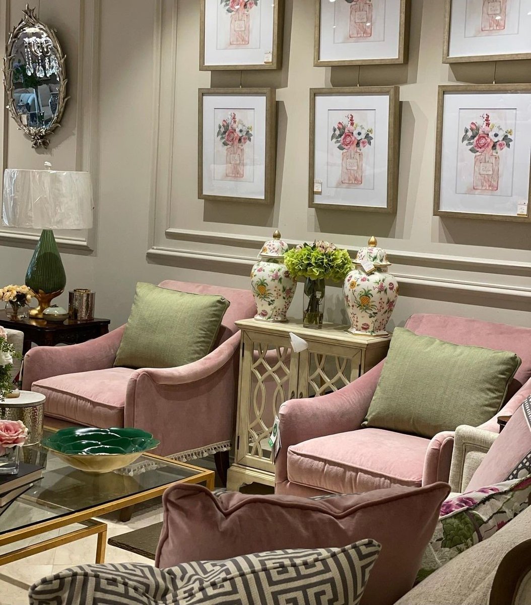 دخول الازرق مع الوردي جميل لانه قلييييل .. والكراسي المفرده اللي بدون ظهر خامه مختلفه عطت حركه للمكان 👌